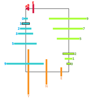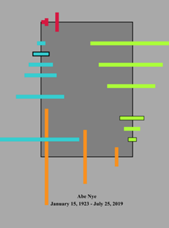 Each bar that extends from a side of the interior rectangle represents a letter in your loved one's name or a number in their date of birth or date of death. The position and length of each bar depends upon the numerical order of the number or the alphabetical order of the letter.